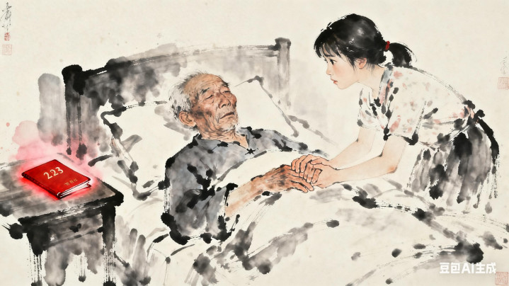 第二天,小芳把老张所有存款全捐给了镇上的养老院,还立了碑,写着“愿以余财,换一世平安”。